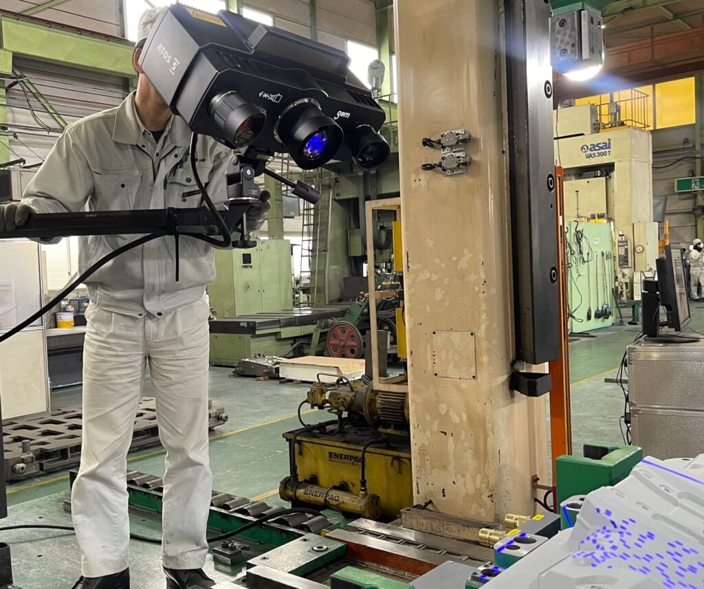当社では、非接触式三次元測定器 ATOS を保有しています。このATOSにより、ワーク等の条件によりますが、寸法公差 ±0.01まで測定することが可能です。